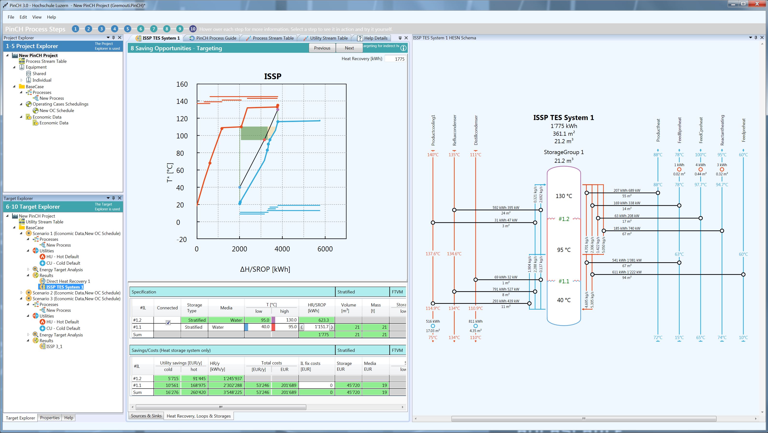 In der Industrie werden viele Produkte mit diskontinuierlichen Verfahren hergestellt. Oft ist der Produktionszeitplan unregelmässig oder der Anspruch an die zeitliche Flexibilität so hoch, so dass eine Wärmerückgewinnung mit Speicherung die einzig mögliche Optimierungsstrategie ist. Der Einbau von Wärmespeichern erschliesst zusätzliches Einsparpotenzial: Überschüssige Prozesswärme wird zwischengespeichert und zu einem späteren Zeitpunkt wieder verwendet. «Der neue Release PinCH 3.0 eignet sich hervorragend zur raschen Identifikation, Dimensionierung und Wirtschaftlichkeitsbetrachtung von thermischen Energiespeichersystemen in Industrieunternehmen», sagt Beat Wellig. Mit den neuen Features kann bestimmt werden, ob Energiespeicherung wirtschaftlich möglich ist, welche Wärmequellen und Wärmesenken berücksichtigt und wie die Speicherkapazitäten und Speichertemperaturen gewählt werden sollen.