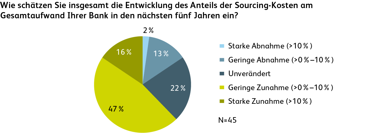 Damit dürfte das bisher vorherrschende Interesse, mit dem Outsourcing Kosten zu minimieren, beidseitig an Bedeutung verlieren. Neben dem Wissen der Anbieter ist das Preis-Leistungsverhältnis für die Banken das wichtigste Kriterium bei der Auswahl. «Doch wissen die Banken, dass es nicht realistisch ist, die höchste Qualität zum tiefsten Preis zu fordern», so Blattmann. Zudem sind Banken mit einem tendenziell höheren Outsourcing-Anteil im Vergleich mit Instituten, die einen niedrigeren oder gar keinen Outsourcing-Anteil ausweisen, nicht effizienter oder weniger effizient als Mitbewerber. Die Kosteneffizienz einer Bank wird offensichtlich von anderen Faktoren geprägt.