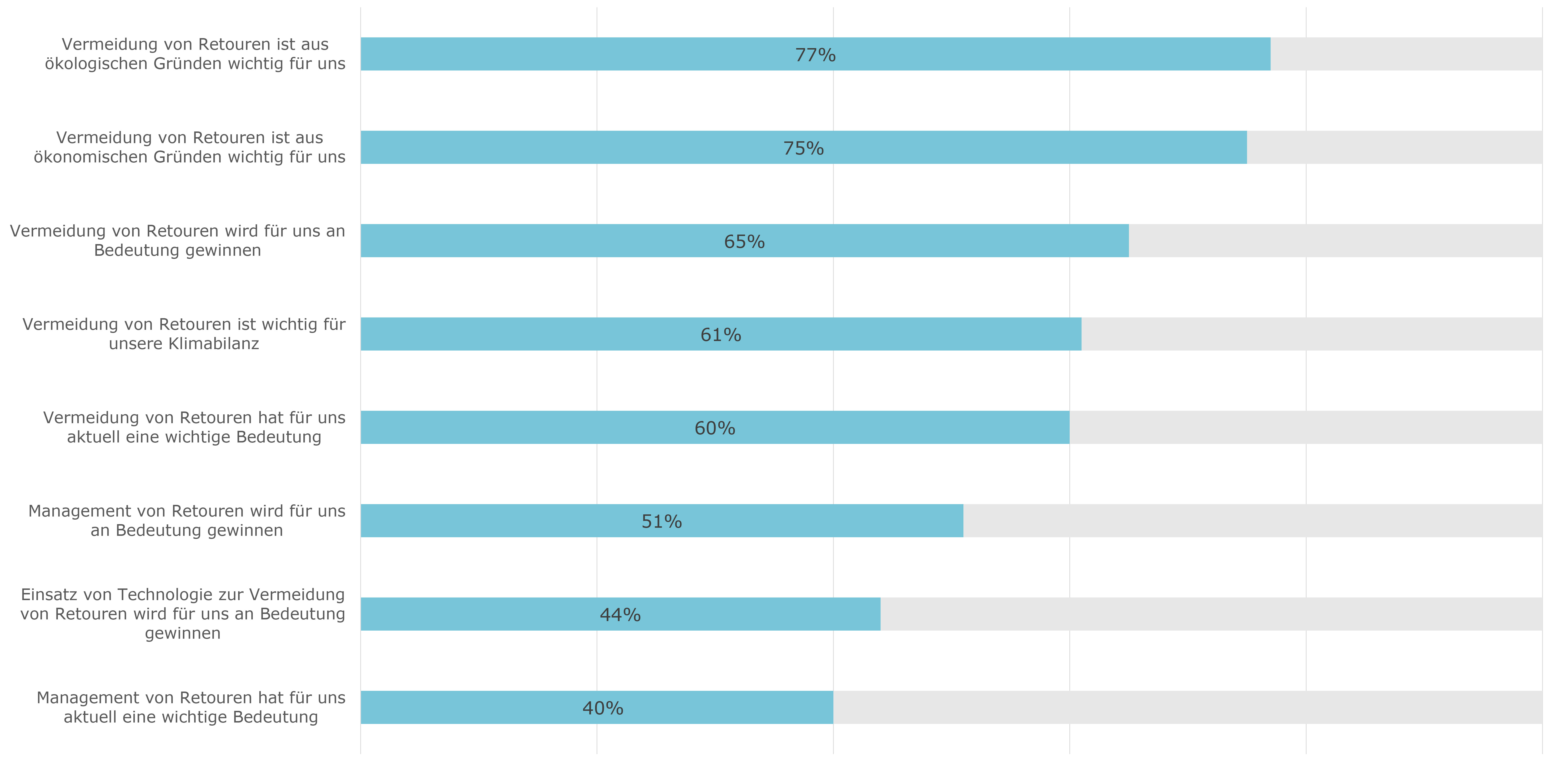 Rund zwei Drittel aller befragten Onlineshops geben an, dass die Vermeidung von Retouren für sie an Bedeutung gewinnen wird (Abbildung 2: Inwieweit treffen folgende Aussagen zu?; zum Vergrössern klicken).
