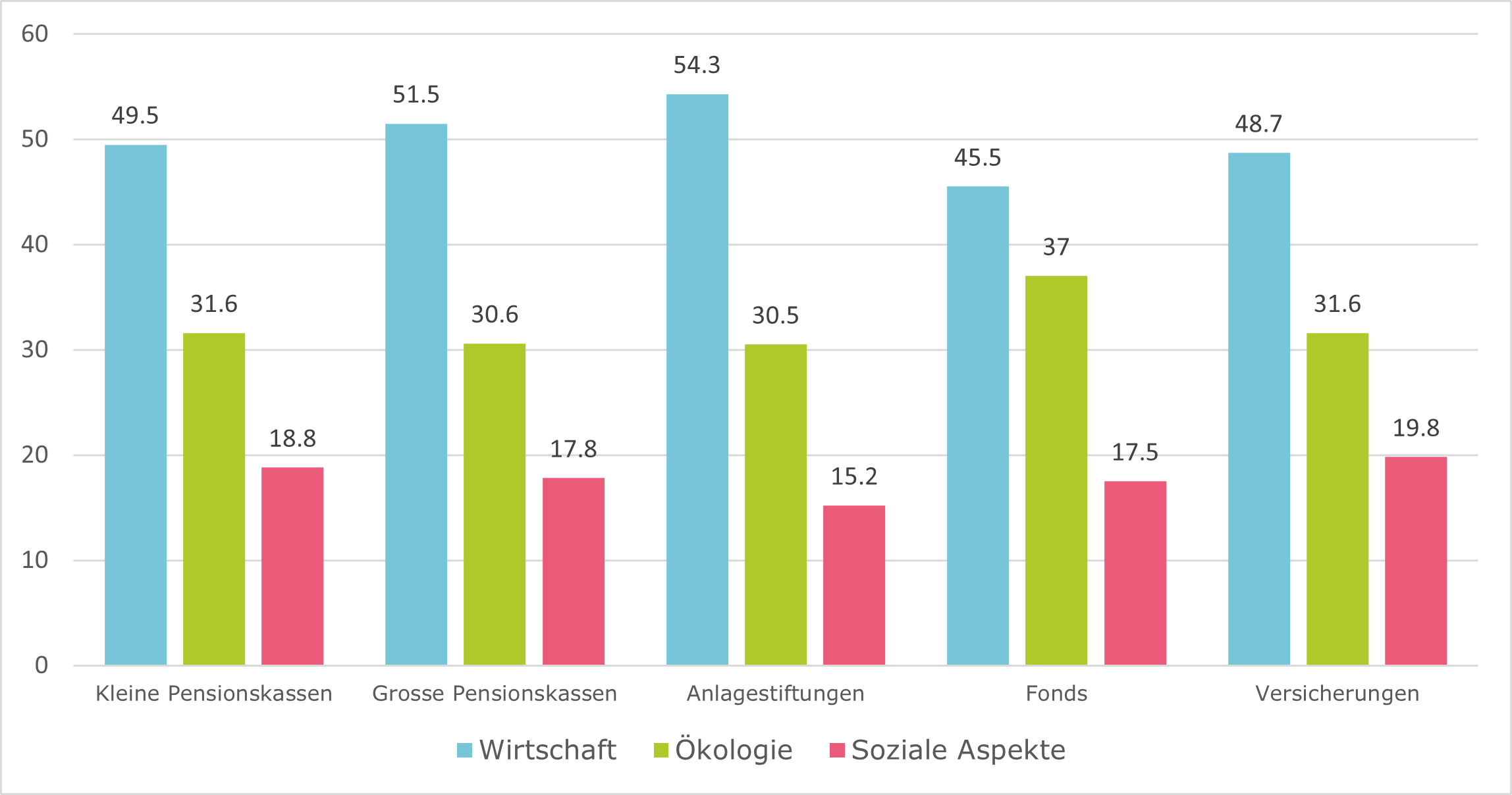 Institutionelle Anleger gewichten die wirtschaftliche Dimension klar stärker als die ökologischen sowie sozialen Aspekte.