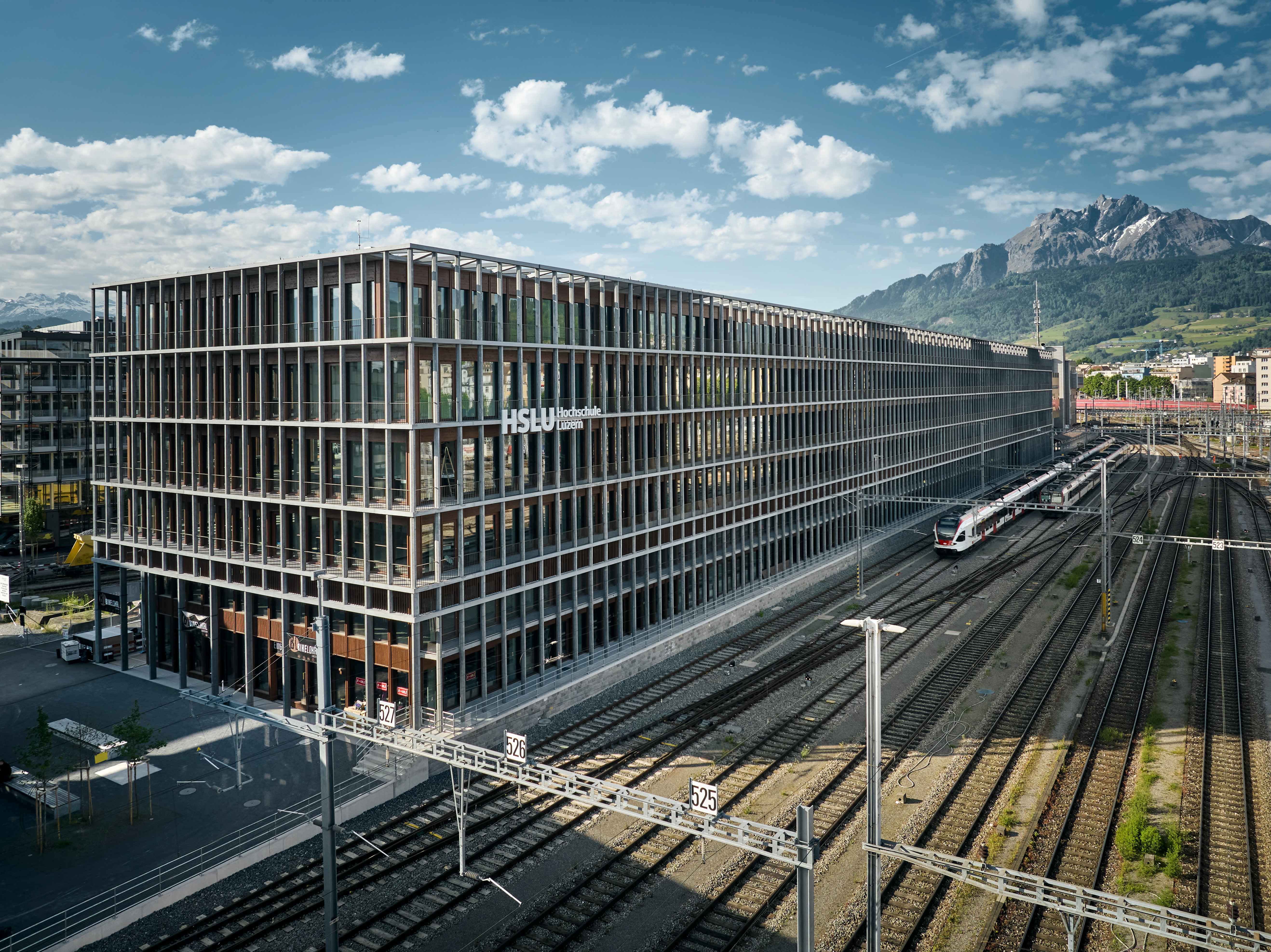Die Hochschule Luzern nimmt zum Semesterstart am 16. Februar 2026 das neue Gebäude «Perron» in Betrieb. Das fünfstöckige, 180 Meter lange Gebäude befindet sich im Rösslimatt-Quartier und liegt direkt neben dem Bahnhof Luzern. Es bietet eine zeitgemässe Infrastruktur für Studium, Weiterbildung, Forschung, Austausch und Kooperation. «Mit dem neuen Gebäude erreichen wir einen wichtigen Meilenstein in der Entwicklung der Hochschule», freut sich Rektorin Barbara Bader.