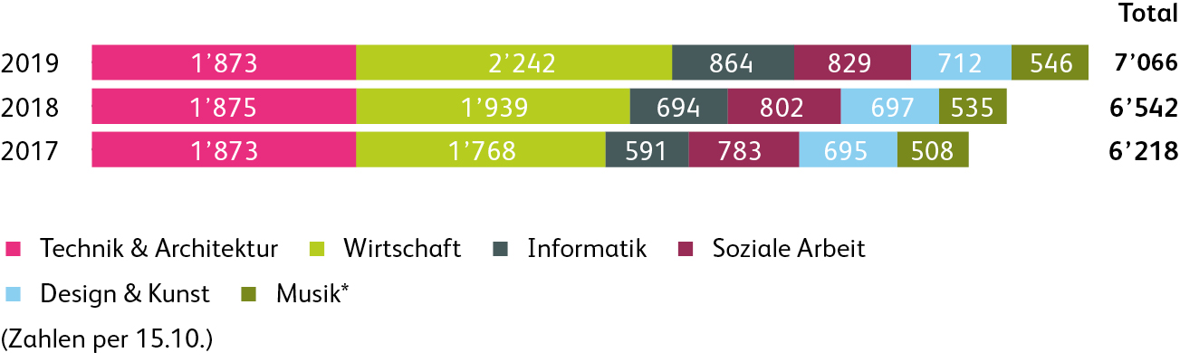 Das Ressort Ausbildung blickt auf ein erfreuliches Jahr 2019 zurück. Die Gesamtzahl der Studierenden konnte um 500 Personen auf insgesamt 7’066 Studentinnen und Studenten gesteigert werden. Massgeblich zur Entwicklung beigetragen hat das neue Studienangebot Business Psychology, das auf grosses Interesse bei den Studierenden gestossen ist.