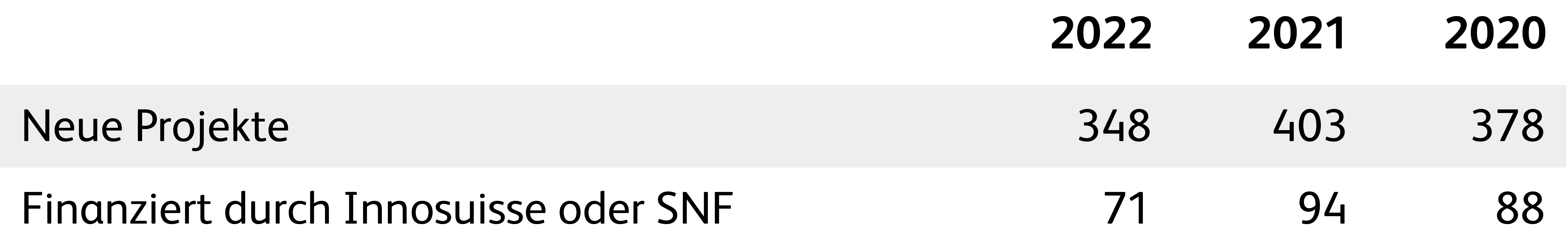 2022 starteten insgesamt 348 Projekte in Forschung & Entwicklung. 71 davon wurden von der Schweizerischen Agentur für Innovationsförderung Innosuisse oder vom Schweizerischen Nationalfonds SNF mitfinanziert.