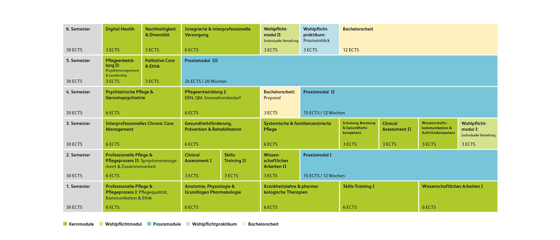 Bachelor of Science in Pflege Semesterstruktur