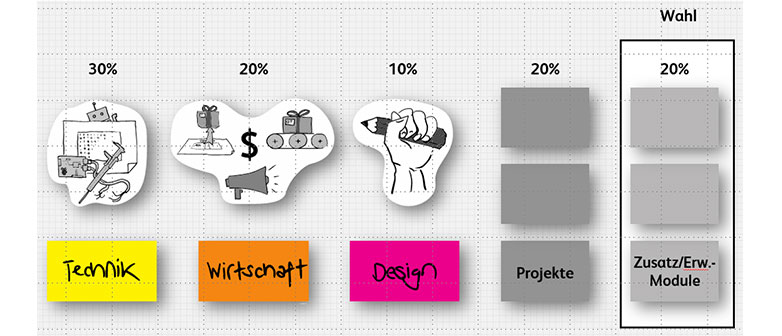 • 80% Pflichtmodule werden mit 20 % Wahlmodulen ergänzt.