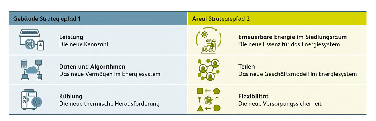 Bis 2030 sollten die CO2-Emissionen in allen Konsumbereichen halbiert werden. Um den Energiebedarf im Siedlungsraum für Raumheizung, Kühlung, Warmwasser und den Haushaltsstrombedarf emissionsfrei zu decken, bedarf es thermischer und elektrischer Energie aus erneuerbaren Quellen. Diese werden im besten Fall lokal bereitgestellt. Dabei ist der Umbau des Versorgungssystems von fossil zu erneuerbar und von zentral auf dezentral systemisch anzupacken.