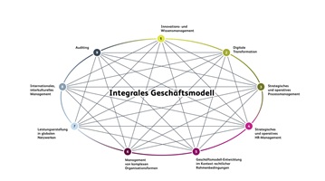 Insgesamt neun eng miteinander verknüpfte Kurse gruppieren sich um das integrale Verständnis von Geschäftsmodellen und beleuchten exzellente Unternehmensführung jeweils aus der Fachperspektive des jeweiligen Kurses sowie in Wechselwirkung mit den anderen Kursinhalten: