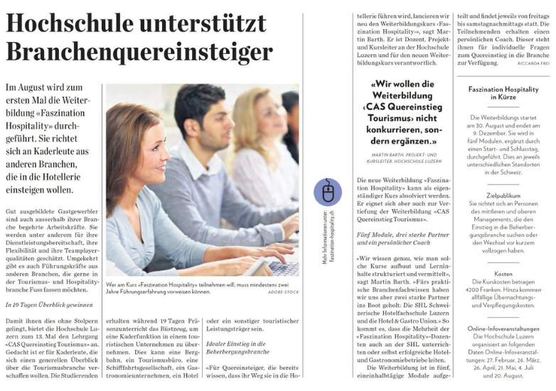 Der neue Weiterbildungskurs «Faszination Hospitality» der Hochschule Luzern in Zusammenarbeit mit der SHL Schweizerischen Hotelfachschule Luzern und der Hotel & Gastro Union leistet Ihnen bei diesem Quereinstieg Unterstützung.