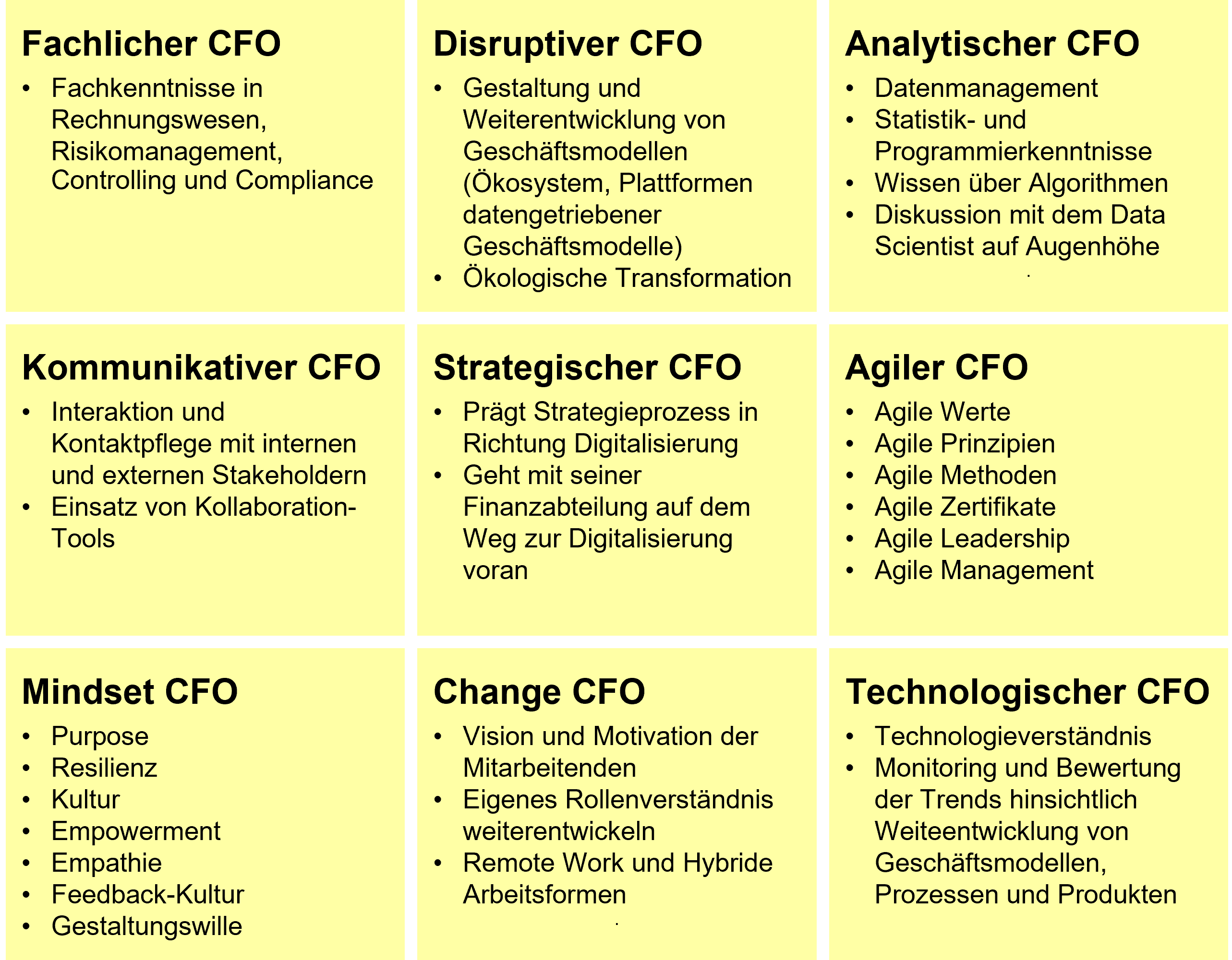 Die erfolgreiche Umsetzung der Finance Transformation gelingt nur mit einem neuen CFO-Kompetenzprofil. Der CFO entwickelt sich zum Digital CFO, der sich durch neun Kompetenzen definiert und damit zum digitalen Gestalter wird. Mit unserem berufsbegleitenden Fachkurs unterstützen und begleiten wir Ihre Kompetenzentwicklung zum «Digital CFO».