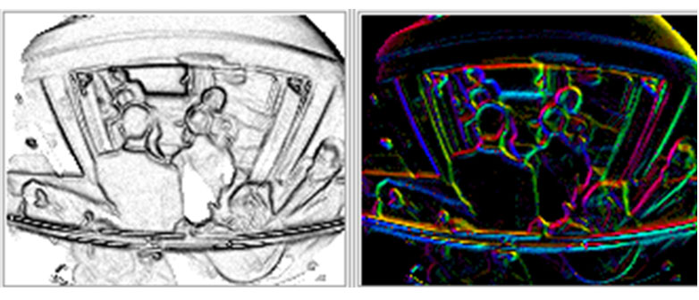 Die Kamerabilder decken jeweils nur einen Teil des Fahrzeuges ab. Daher erfolgt ein sog. «Stitching» der Einzelbilder zu einem Gesamtbild des Fahrzeuges, welches mit den Laserdaten fusioniert wird 5).