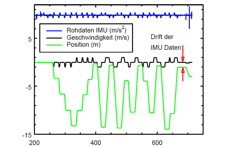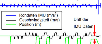 Aus den Daten eines Beschleunigungssensors (IMU) kann auf die Geschwindigkeit bzw. die Position eines Lifts geschlossen werden. Allerdings unterliegen die Daten der IMU einem systematischen Drift bei langen Zeiten.