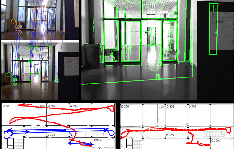 Entwicklung eines autonomen Indoor Navigationssystem durch die Fusion von Daten einer IMU (inertial measurement unit) mit einer Videokamera.