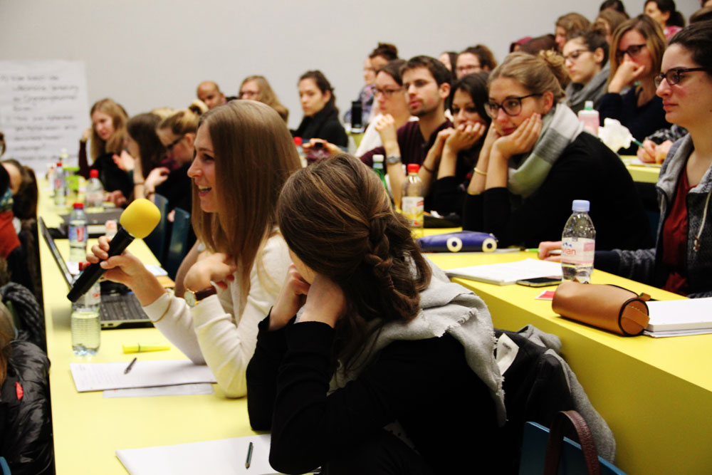 Drei Studierendengruppen konfrontierten sich mit der Komplexität des Themas in besonderer Weise: Sie planten die supponierte Unterbringung von 100 Asylsuchenden in der Hochschule Luzern – Soziale Arbeit für 60 Tage bei laufendem Unterricht. Schlafplätze, Mahlzeiten, Hygieneeinrichtungen, Freizeitprogramme, Deutschunterricht, interne Verantwortlichkeiten, Kommunikation nach aussen – alles war zu organisieren. Alle drei Teams betonten nach der Präsentation ihrer Vorschläge, die sie vor der Blockwoche erarbeitet hatten, dass sie aufgrund der Erkenntnisse der letzten Tage einiges anders angehen würden. Denn: «Wir haben auch zu praktischen Erfordernissen im Asylbereich viel gelernt.»
