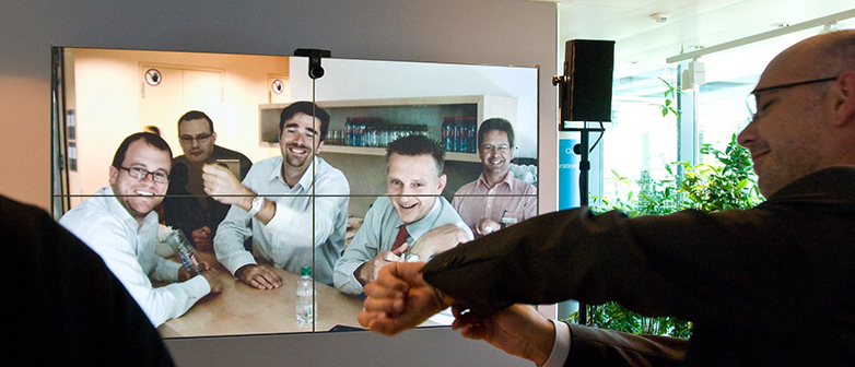 Angefangen hat alles an einer Party: Im Juli 2009 eröffnete Cisco Systems – ein weltweit tätiger Anbieter von Kommunikations- und Netzwerklösungen – sein neues Büro in Wallisellen. Während der Planung für das Einweihungsfest kam die Idee auf, das Team vom Standort Rolle in der Westschweiz mit Hilfe einer High-End-Videoverbindung direkt zu den Feierlichkeiten zuzuschalten. Die temporär aufgebaute Videowand in der Cafeteria wurde zu einem vollen Erfolg. «Für uns war klar, dass wir diese Form der internen Kommunikation weiterhin pflegen und allenfalls sogar zu einem neuen Angebot unserer Firma ausbauen wollten», sagt Frank Horn, Customer Success Manager bei Cisco.