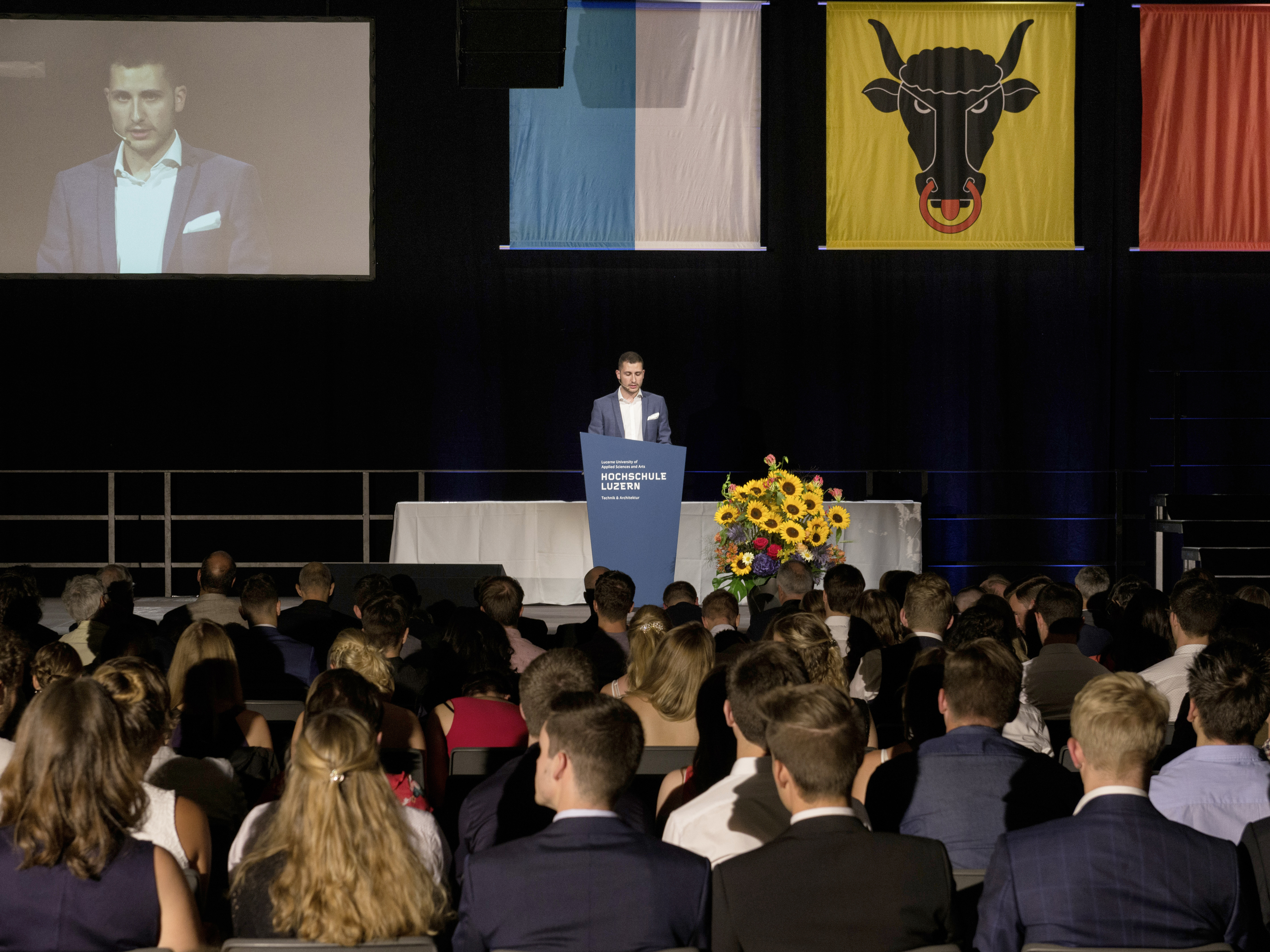 Die Diplomfeier des Departements Technik & Architektur der Hochschule Luzern fand am Samstag in der Messe Luzern statt. In diesem Jahr schlossen 381 Frauen und Männer ein Bachelor-Studium in den Bereichen Architektur, Innenarchitektur, Bauingenieurwesen, Gebäudetechnik | Energie, Elektrotechnik und Informationstechnologie, Maschinentechnik, Wirtschaftsingenieur | Innovation, Medizintechnik und Energy Systems Engineering ab.